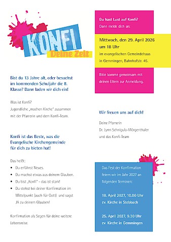 Einladung Konfirmation, Anmeldung am Mittwoch, den 29. April 2026